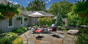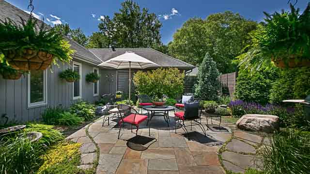 Courtyard patio at the Amesbury Townhomes in Shorewood, Minnesota