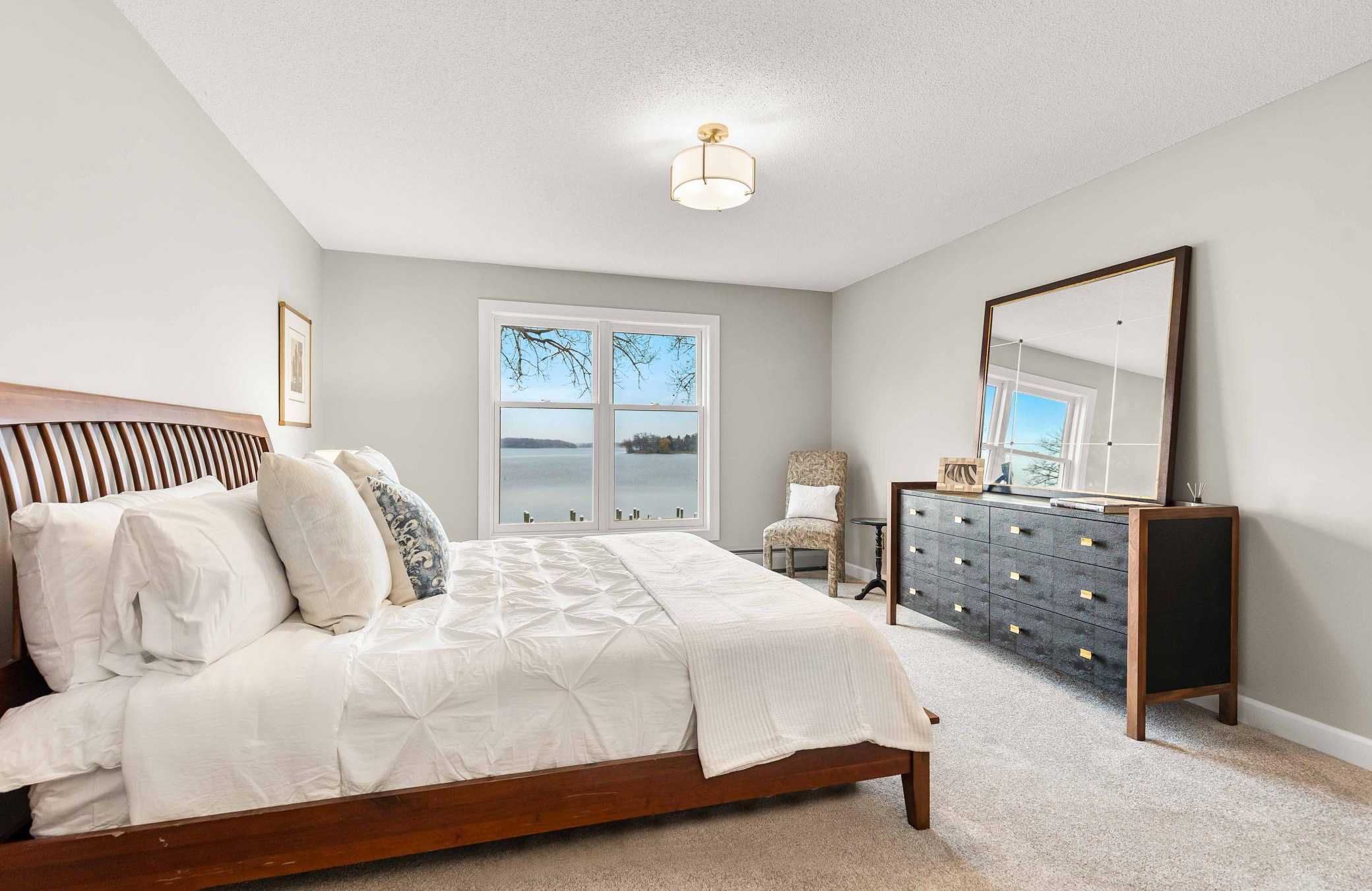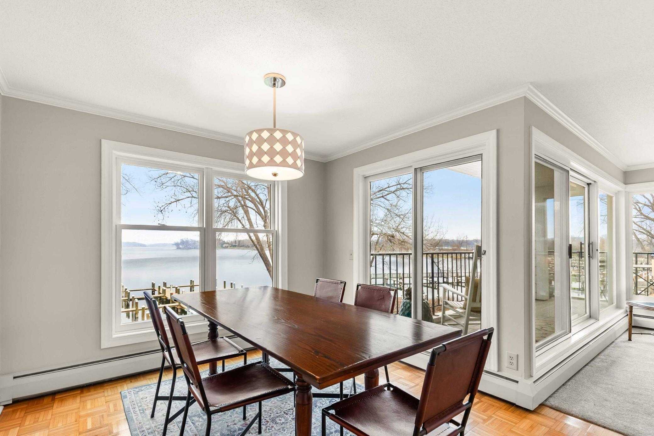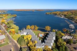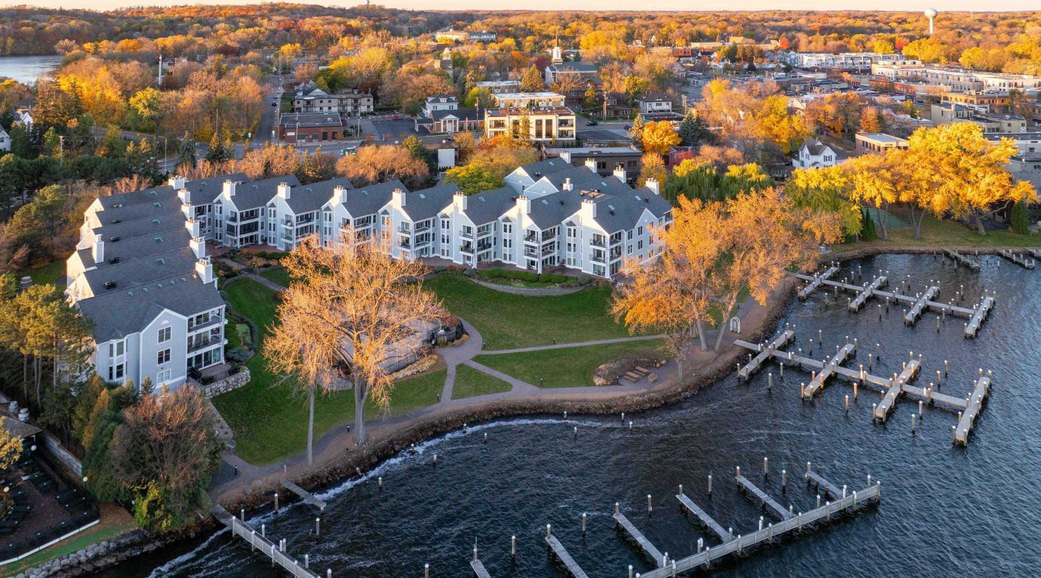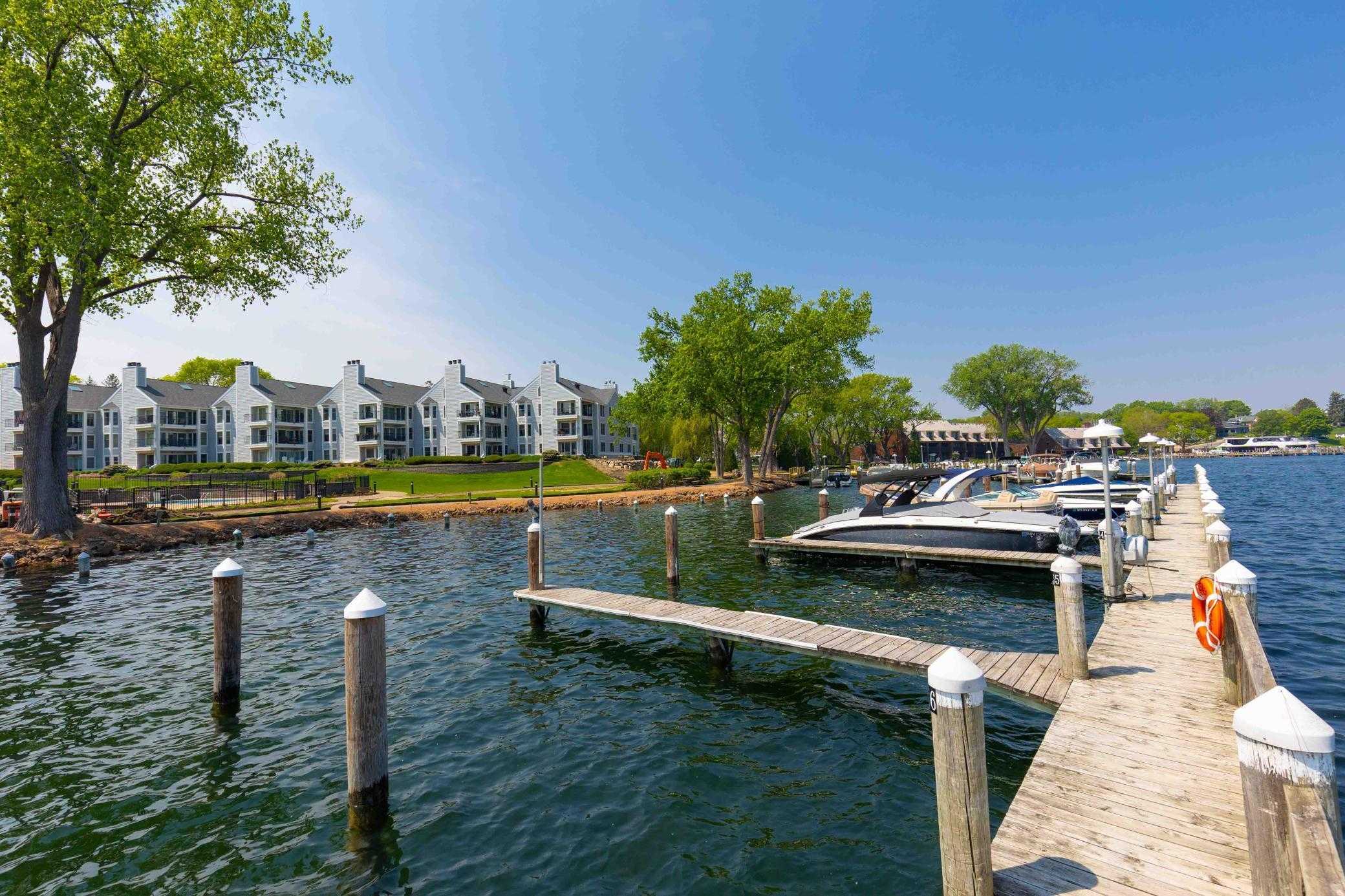 Experience effortless lake living! Elegant end unit condo at the Excelsior Bay Gables featuring unobstructed panoramic views of Lake Minnetonka’s Excelsior Bay and Big Island. The primary suite and second bedroom bookend this naturally sun-filled 1,483-sq-ft layout. A beautifully updated kitchen flows into the dining and living room, while a covered wrap-around maintenance free balcony takes full advantage of the lake views and surrounding natural beauty. The bonus room across the hall can be used as an office or additional storage. HOA amenities include a heated swimming pool, tennis courts, year-round hot tub and sauna facilities, a well-equipped fitness center, private docks with boat slip rentals available, meticulously maintained outdoor common areas, and secure underground heated garage parking with two designated spaces. Enjoy the convenience of walkable access to Downtown Excelsior‘s charming shops, fine restaurants, and Commons Park, all while embracing the relaxed luxury of waterfront living in one of the area’s most desirable locations.