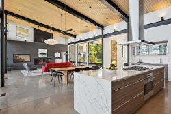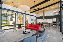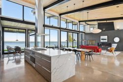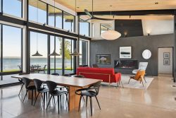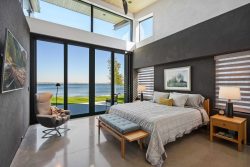 Meticulously maintained contemporary home on the crystal waters of Green Lake. The manicured .52-acre lot features 100 feet of level shoreline, providing panoramic four-mile views across the lake. The home’s architectural design creates a harmonious flow between indoor and outdoor spaces. The center of this 2,500 sq ft home is a stunning open-concept great room that invites natural light and connection to the outdoors. The gourmet kitchen is equipped with high-end appliances, two ovens, two dishwashers, a walk-up wine bar, a large island, and a butler’s pantry, making it well-suited for everyday life and effortless entertaining. Multiple dining areas lead to the spacious outdoor patio, with glass sliders and a built-in gas fireplace. The primary suite is a personal retreat featuring a spa-like bathroom with an oversized shower and walk-in closet. An additional ensuite bedroom offers private outdoor access and picturesque lake views, enhancing the comfort for visitors. Attention to detail is evident throughout the home, with refined materials such as concrete, stucco, and steel alongside high-efficiency systems, including a tankless water heater and smart home technology. An oversized heated two-car garage and a functional mudroom with laundry facilities enhance practicality. Located minutes from downtown Spicer, this home embodies a thoughtful blend of lakeside comfort and convenience. For questions or to set up a showing, contact listing agents Paul Johnson and Mark Hoiseth.