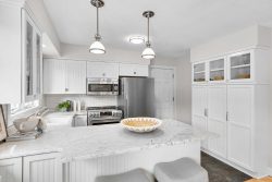 Convenient Location, Peaceful Oasis. Complete with numerous improvements, this one-story home, featuring an abundance of natural light, is move-in ready. The main level centers on the stunning kitchen, which includes upgraded appliances, designer fixtures, custom cabinetry, and hardware, as well as an adjacent dining area. The living room consists of a gas fireplace and charming plantation shutters. Rounding out the main level are the three well-designed bedrooms and an upgraded full bath with a spacious tub. The cedar deck off the dining room opens to the south-facing 0.56-acre yard, complete with perennial gardens and patio. The finished lower-level walkout boasts tall ceilings, a family room, a game room, and a fourth bedroom with a separate entrance, a three-quarter bath, and a laundry room. Notable updates include flooring, carpeting, paint, and lighting. The mechanicals are newer, along with windows, a Timber Tech porch, a durable 30-year Timberline roof, LP SmartSiding, and LeafGuard gutters, ensuring lasting quality and low maintenance. Located in the peaceful Green Haven neighborhood, just two blocks from the park. Osseo School District (279). Offers easy access to shopping, dining, and recreation.