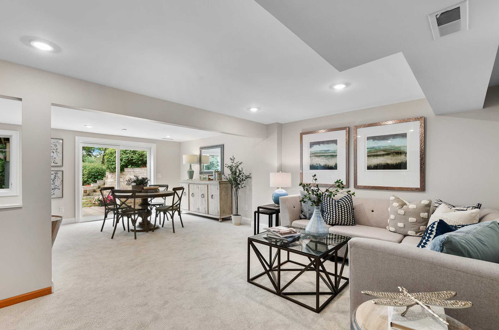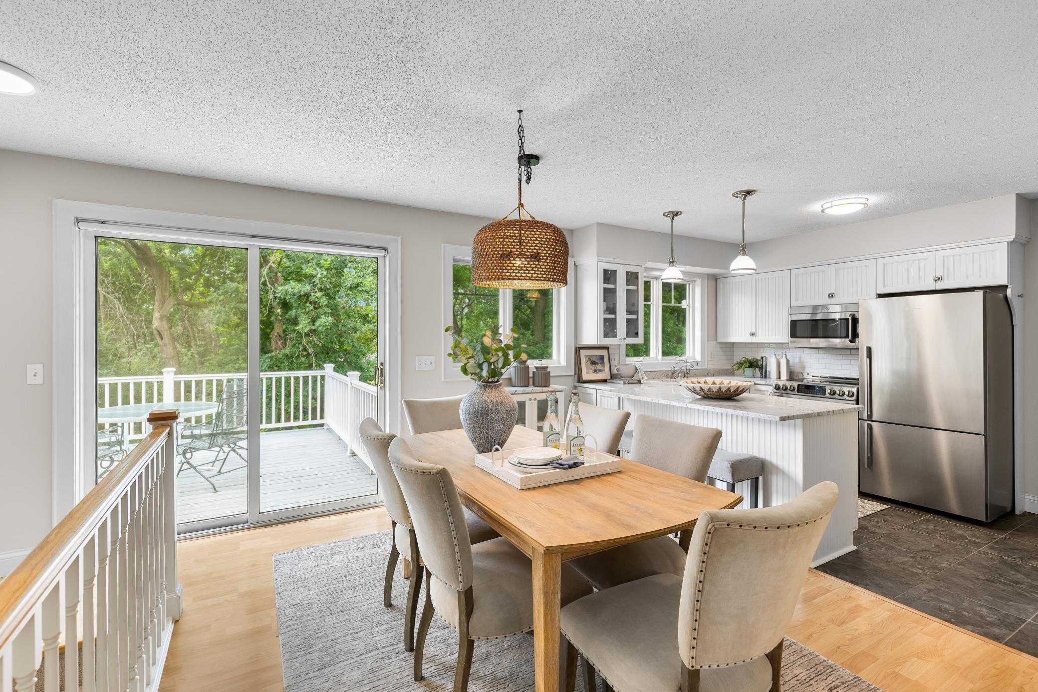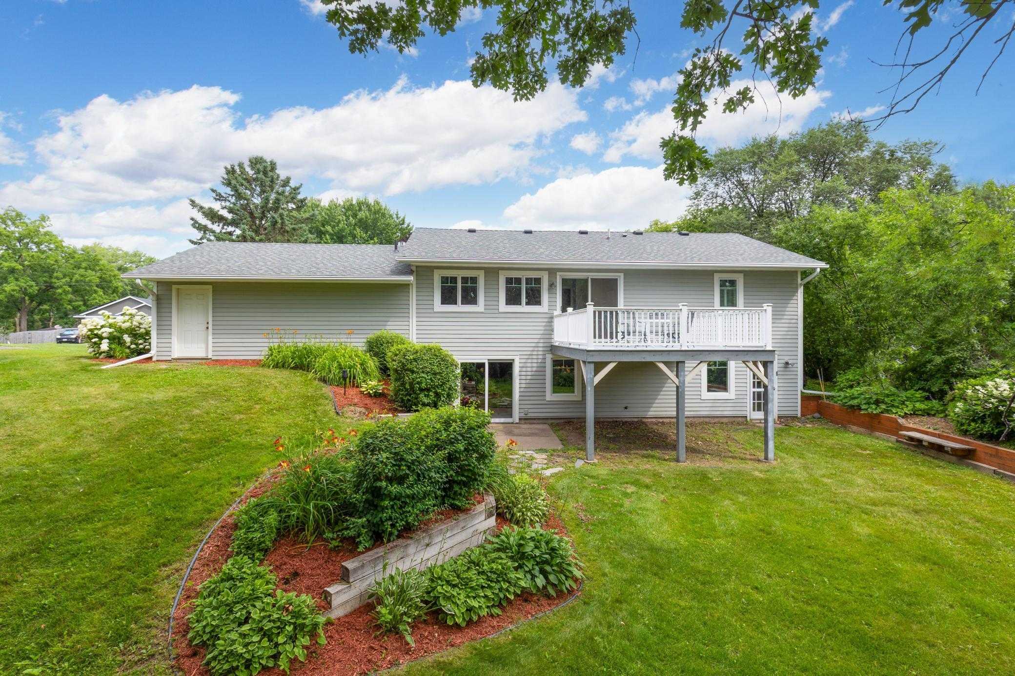 Convenient Location, Peaceful Oasis. Complete with numerous improvements, this one-story home, featuring an abundance of natural light, is move-in ready. The main level centers on the stunning kitchen, which includes upgraded appliances, designer fixtures, custom cabinetry, and hardware, as well as an adjacent dining area. The living room consists of a gas fireplace and charming plantation shutters. Rounding out the main level are the three well-designed bedrooms and an upgraded full bath with a spacious tub. The cedar deck off the dining room opens to the south-facing 0.56-acre yard, complete with perennial gardens and patio. The finished lower-level walkout boasts tall ceilings, a family room, a game room, and a fourth bedroom with a separate entrance, a three-quarter bath, and a laundry room. Notable updates include flooring, carpeting, paint, and lighting. The mechanicals are newer, along with windows, a Timber Tech porch, a durable 30-year Timberline roof, LP SmartSiding, and LeafGuard gutters, ensuring lasting quality and low maintenance. Located in the peaceful Green Haven neighborhood, just two blocks from the park. Osseo School District (279). Offers easy access to shopping, dining, and recreation.