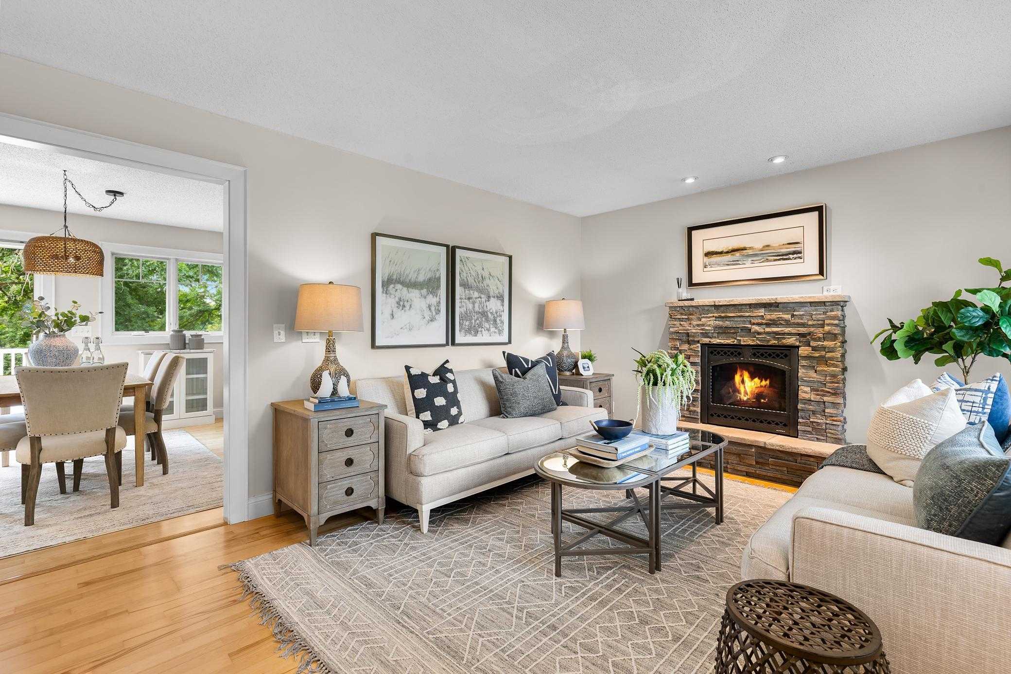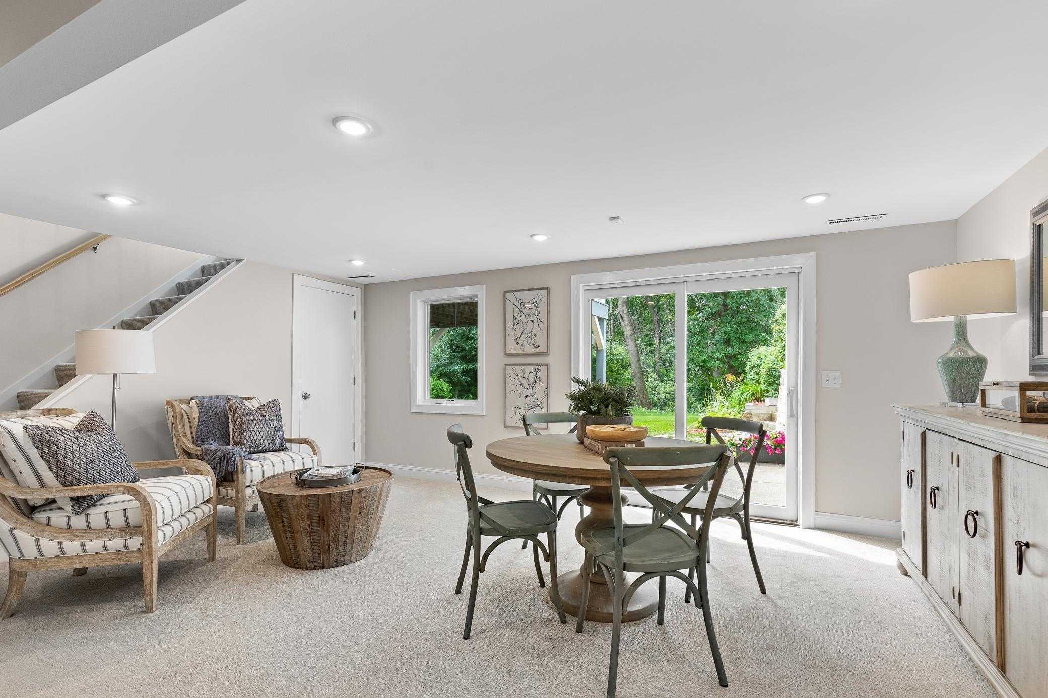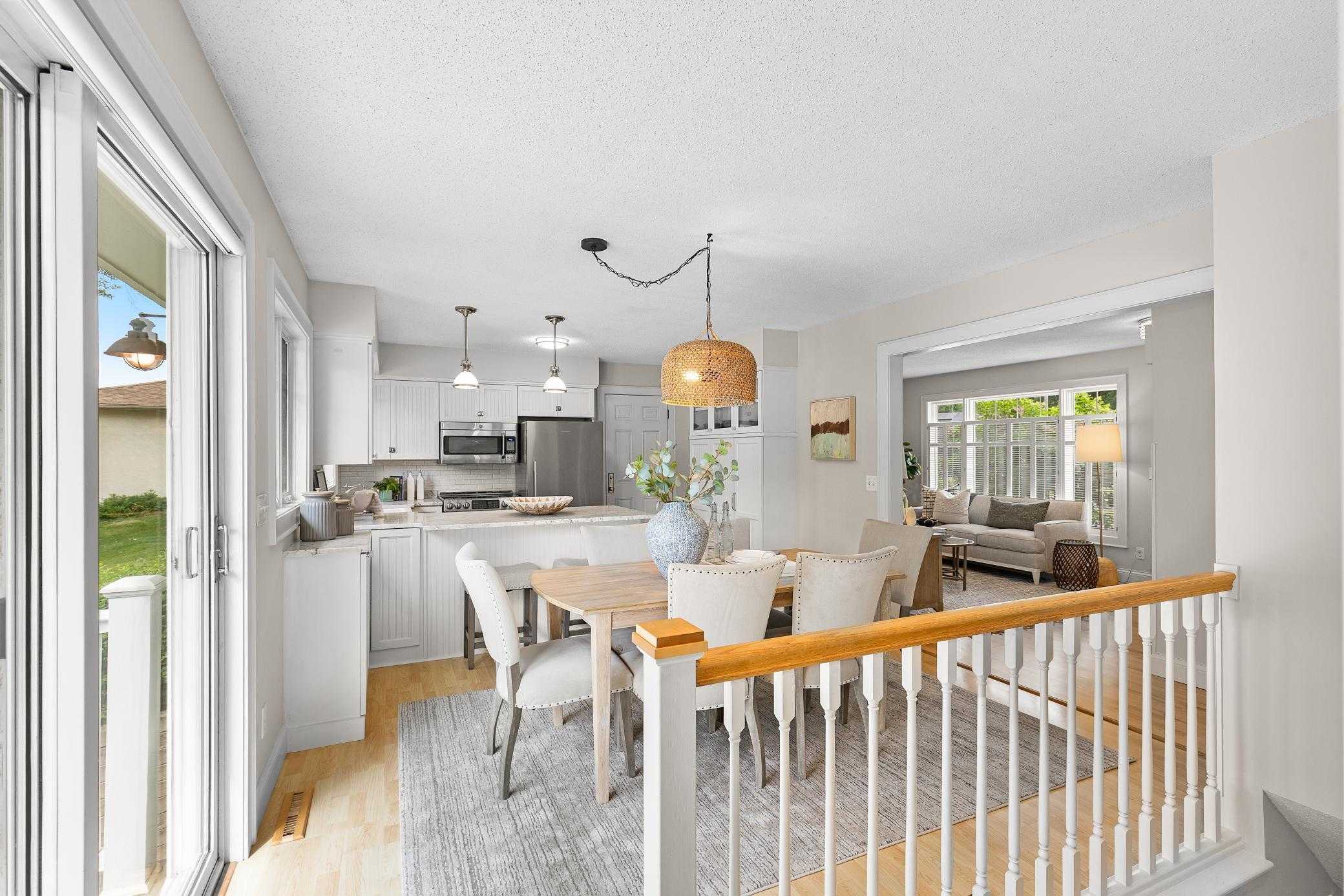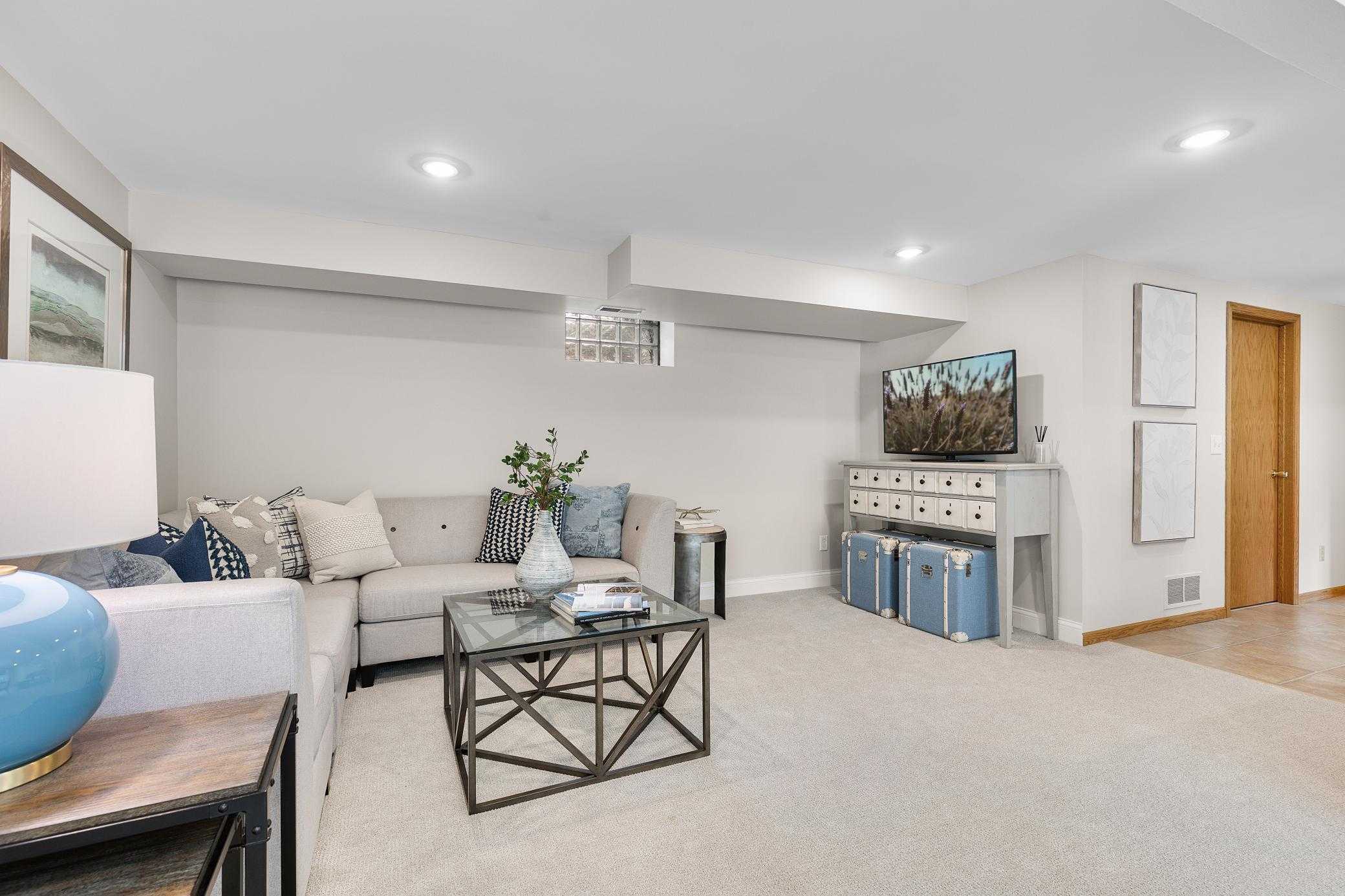 Convenient Location, Peaceful Oasis. Complete with numerous improvements, this one-story home, featuring an abundance of natural light, is move-in ready. The main level centers on the stunning kitchen, which includes upgraded appliances, designer fixtures, custom cabinetry, and hardware, as well as an adjacent dining area. The living room consists of a gas fireplace and charming plantation shutters. Rounding out the main level are the three well-designed bedrooms and an upgraded full bath with a spacious tub. The cedar deck off the dining room opens to the south-facing 0.56-acre yard, complete with perennial gardens and patio. The finished lower-level walkout boasts tall ceilings, a family room, a game room, and a fourth bedroom with a separate entrance, a three-quarter bath, and a laundry room. Notable updates include flooring, carpeting, paint, and lighting. The mechanicals are newer, along with windows, a Timber Tech porch, a durable 30-year Timberline roof, LP SmartSiding, and LeafGuard gutters, ensuring lasting quality and low maintenance. Located in the peaceful Green Haven neighborhood, just two blocks from the park. Osseo School District (279). Offers easy access to shopping, dining, and recreation.