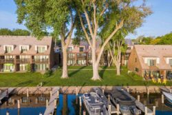 Turnkey, carefree living! Excelsior’s Bayshore Manor lakefront townhome on Lake Minnetonka! Beautifully remodeled in the past five years. The soundproofed interior provides peaceful living with convenient downtown accessibility. The renovated interior blends today’s amenities with the natural, sweeping views of Lake Minnetonka. The quaint front porch invites you into the designed foyer and expansive kitchen, showcasing a modern flair with premium functionality: custom enameled cabinetry, Cambria countertops, Kitchen-Aid appliances, Uline wine refrigerator, and counter seating. Expansive lake views continue in the upper-level owner’s suite. The artfully remodeled upper level incorporates a more significant footprint of the owner’s custom bath, an in-unit laundry closet, and additional wardrobe storage. Located steps from Excelsior’s shopping, dining, the Commons beach, and park. HOA dues include boat slip for up to 30′ boat and fiber optic internet.